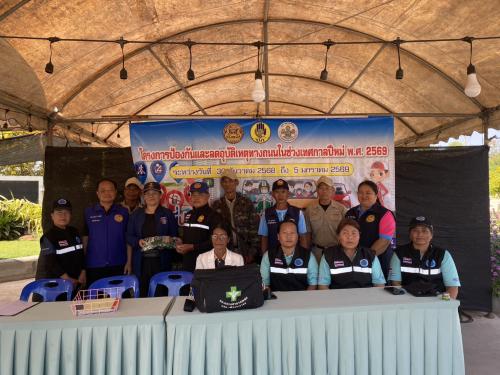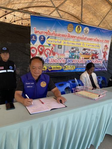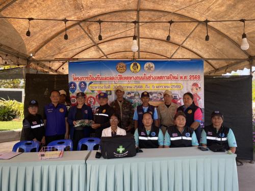 📍ทั้งนี้ ได้กล่าวให้กำลังใจและมอบสิ่งของเพื่อเป็นขวัญกำลังใจให้กับผู้ปฏิบัติงานในการปฏิบัติหน้าที่ป้องกันและลดอุบัติเหตุทางถนนช่วงเทศกาลปีใหม่ ๒๕๖๙ ตามโครงการป้องกันและลดอุบัติเหตุ ในช่วงเทศกาลปีใหม่ ๒๕๖๙