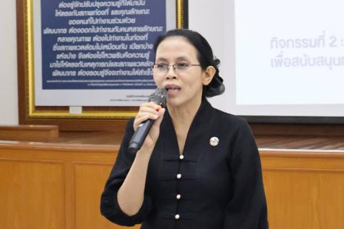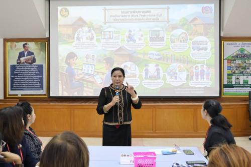 ✨ในโอกาสนี้ นางอรุณรัตน์ ชิงชนะ ผู้ตรวจราชการกรมฯ ได้เน้นย้ำถึงนโยบายสำคัญด้านการบริหารจัดการองค์กร โดยเฉพาะ "มาตรการประหยัดพลังงานและการปฏิบัติงานนอกสถานที่ (WFH)" ของกรมการพัฒนาชุมชน เพื่อรับมือกับสถานการณ์ความขัดแย้งในตะวันออกกลางที่ส่งผลกระทบโดยตรงต่อราคาน้ำมันและค่าครองชีพ โดยมีมาตรการสำคัญที่กรมฯ รณรงค์อย่างจริงจัง ประกอบด้วย: กำหนดลดการใช้ไฟฟ้าในห้องประชุมลง ๕๐% การจัดทำแผน WFH ตามความเหมาะสม โดยให้สิทธิ์กลุ่มบุคลากรที่มีที่พักอาศัยอยู่ไกลเป็นอันดับแรก และตั้งเป้าให้มีบุคลากรปฏิบัติงานในสำนักงานน้อยกว่าร้อยละ ๓๐ ของจำนวนทั้งหมด