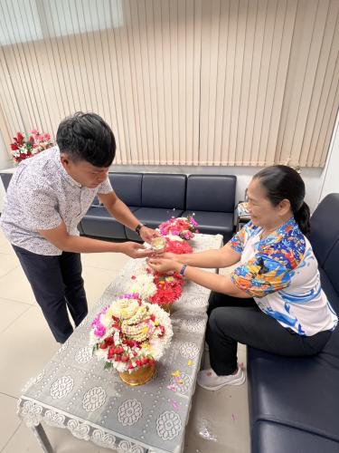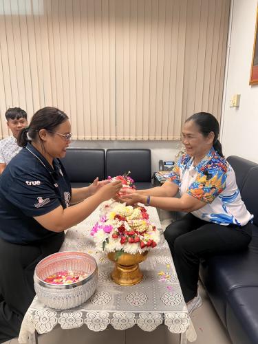 ภายในงานได้จัดให้มีพิธีรดน้ำขอพรจากหัวหน้าหน่วยงาน เพื่อความเป็นสิริมงคลแก่ชีวิตและการทำงาน อีกทั้งยังเป็นการแสดงความเคารพ กตัญญูกตเวที และสร้างขวัญกำลังใจให้แก่บุคลากรในการปฏิบัติงานต่อไปและสร้างความสามัคคีภายในหน่วยงาน โดยเจ้าหน้าที่ทุกคนได้ร่วมกันสรงน้ำพระด้วยความเคารพศรัทธา บรรยากาศเป็นไปด้วยความอบอุ่น เรียบง่าย และเปี่ยมด้วยรอยยิ้ม